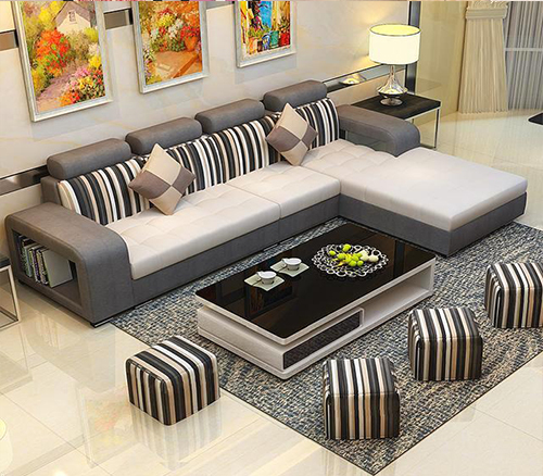Four, simple style with multi-functional fabric sofa.