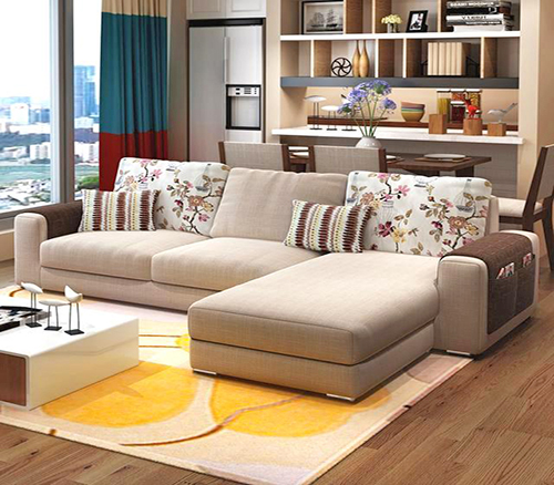 Modern simple corner flannel sofa, with warm color sofa color. Fashion and highlighting, different styles of living room, just to give you the most comfortable experience.